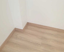 МДФ плинтус от компании "Лука". Перекроет зазор между стеной и полом до 16 мм.